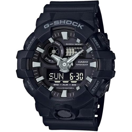 • From G-SHOCK, the watch brand that constantly sets new standards for toughness, comes the GA700-1B analog-digital watch with bold new case silhouette featuring 3D dial and hands for a multi-dimensional, carved out of metal look.