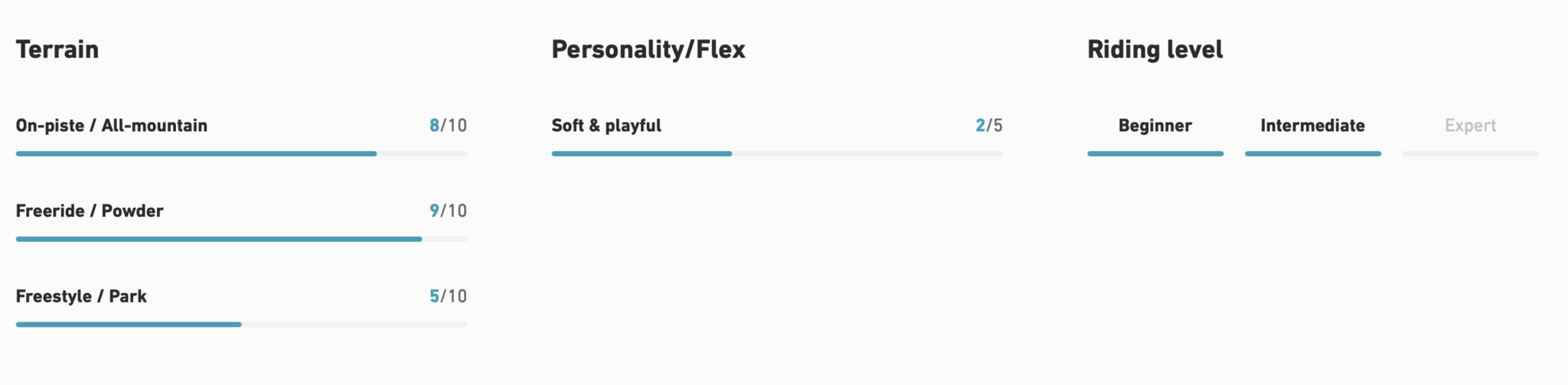 • Friendly freeride, easy to turn, floaty.