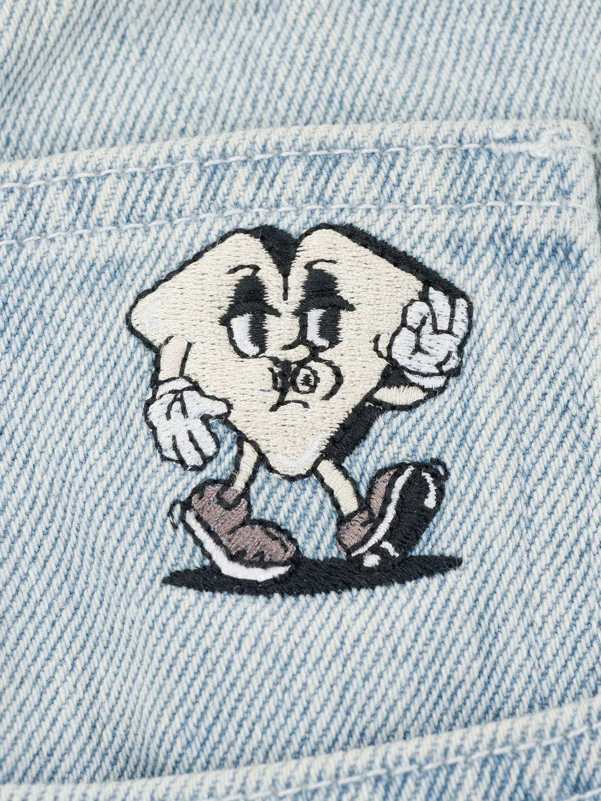 Woven label on back right pocket