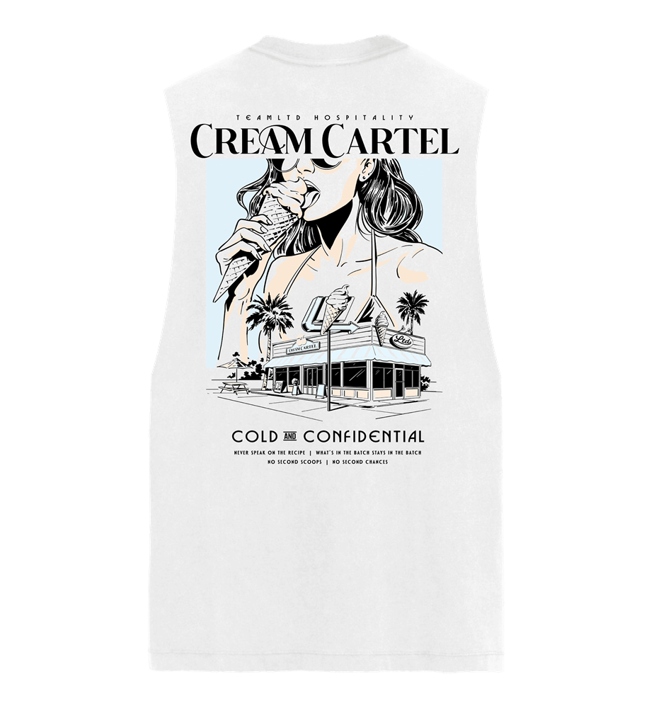 • Designed in our signature Aussie tank fit with side split seams, the Cream Cartel is where the ice cream is cold, the stories are confidential, and the rules are written in sprinkles. Finished with a subtle left chest logo for a clean look.