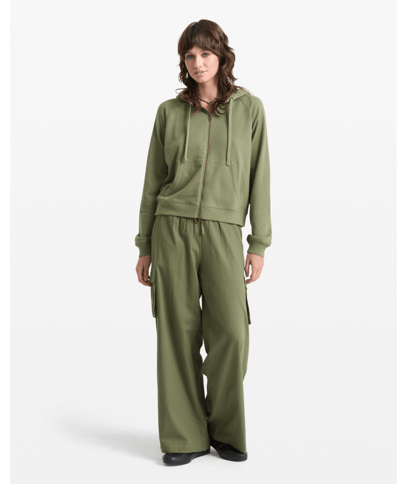Volcom Lived In Fleece Zip (Womens) | Moss Stone